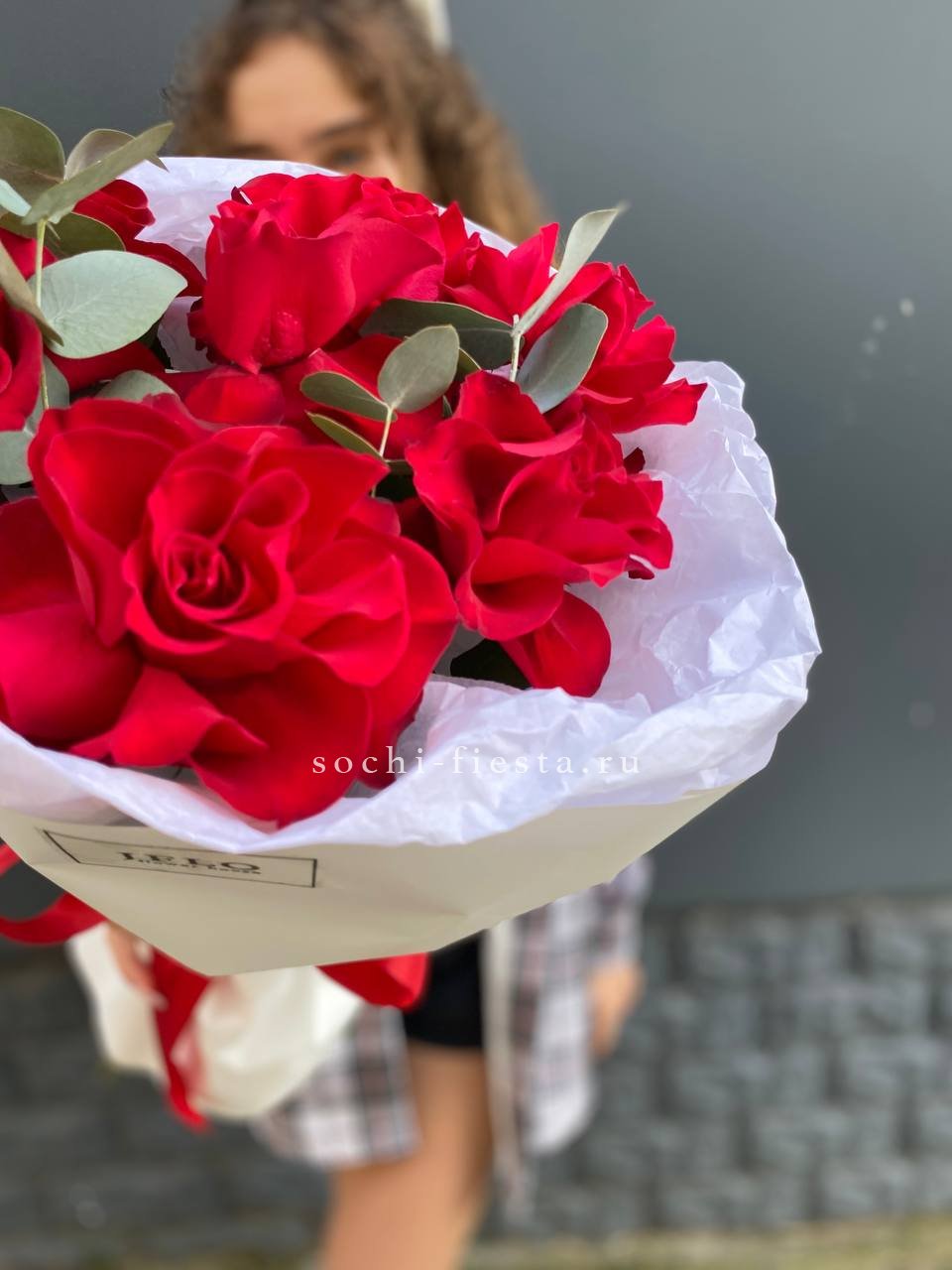 Тридцать один бутон насыщенного красного оттенка собраны в плотную композицию. Упаковка мягко обрамляет цветы, сохраняя естественную форму и позволяя каждому бутону раскрыться в своем ритме.