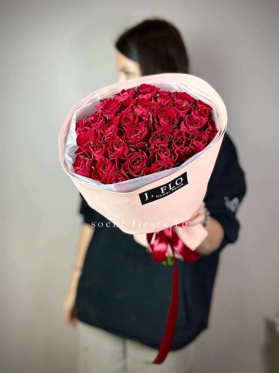 Тридцать пять кенийских роз в лаконичной упаковке подходят для современного интерьера и динамичного ритма жизни. Букет выглядит актуально и вписывается в минималистичную эстетику.
