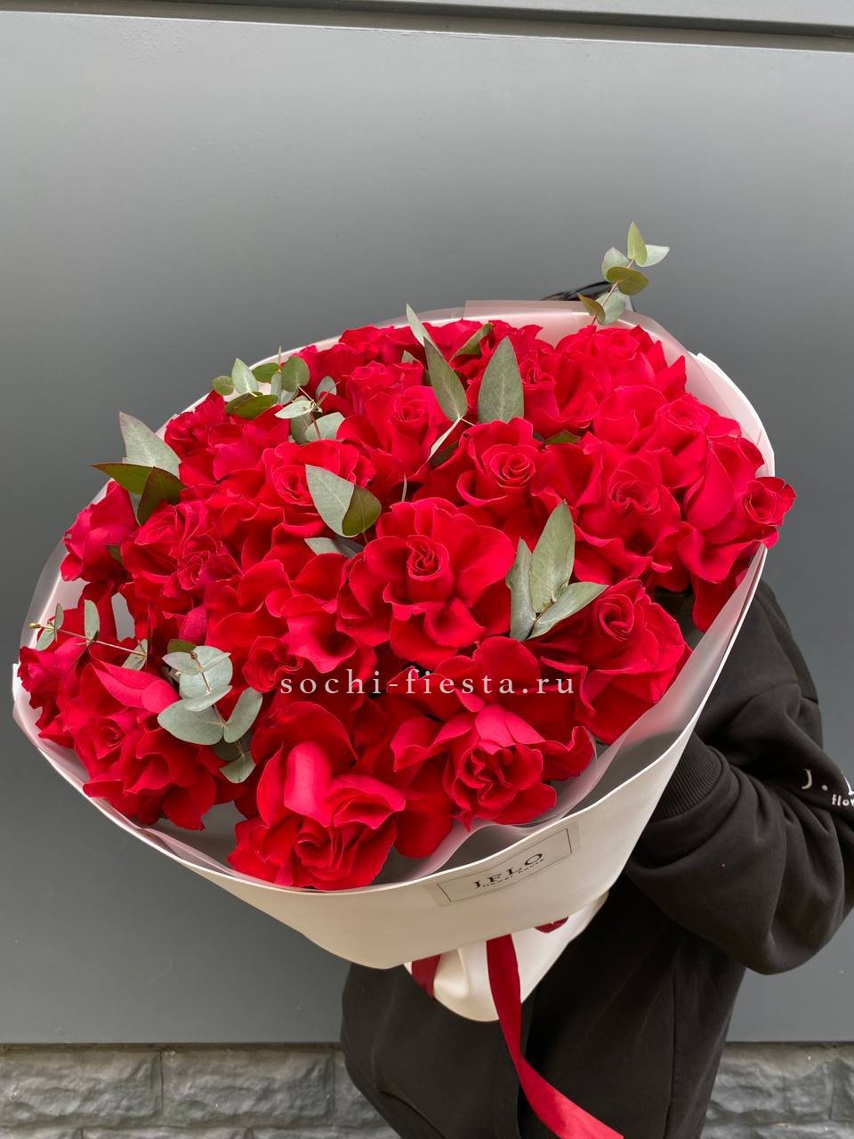 37 роз, лента, дизайнерская пленка.