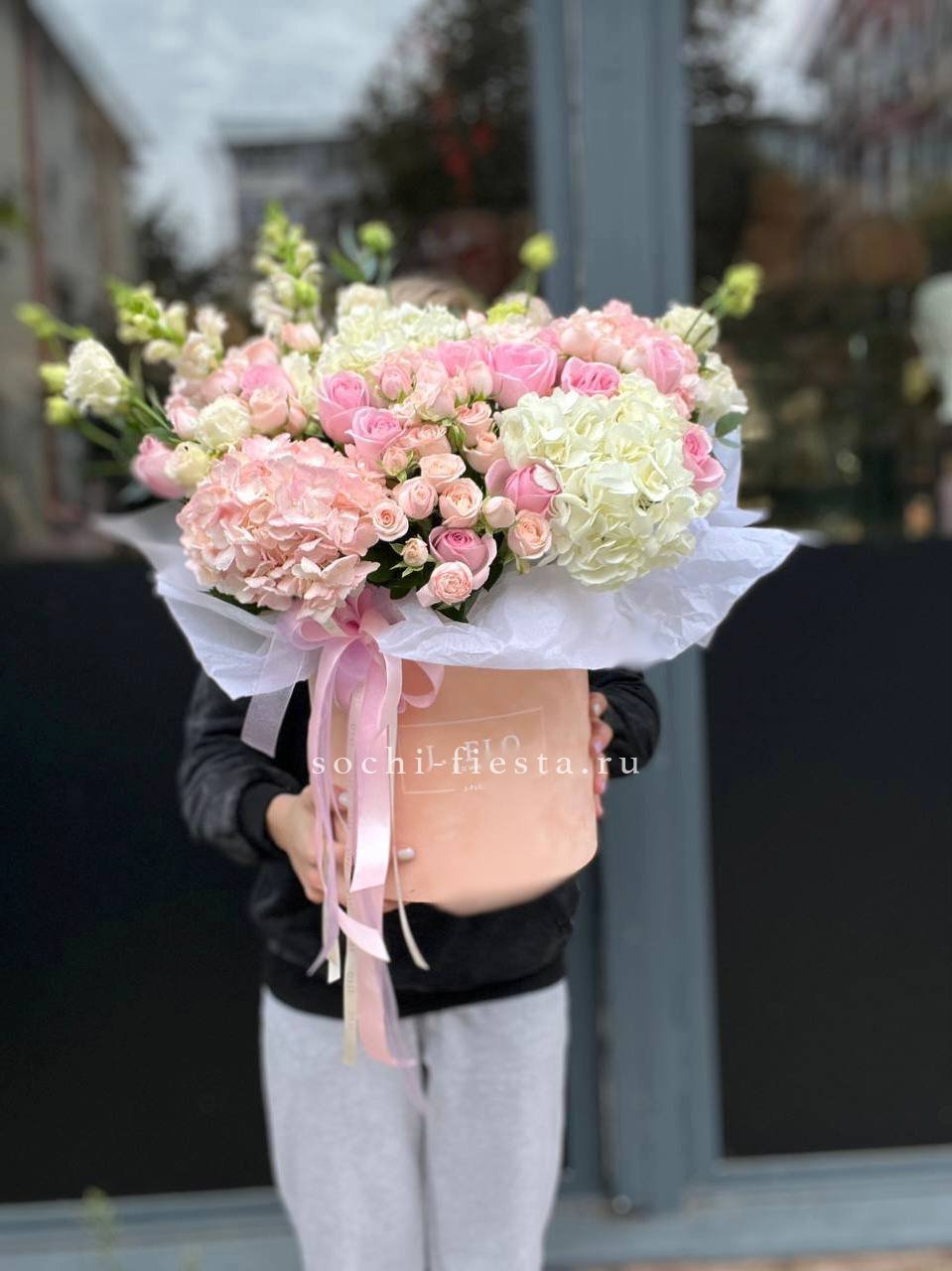 Эта роскошная композиция в модной упаковке объединяет благородные цветы с разными текстурами, создавая многогранный и богатый образ. Деликатные оттенки символизируют утонченность, элегантность и безупречный вкус. Букет подчеркнет индивидуальность дарителя и станет незабываемым акцентом любого торжества.