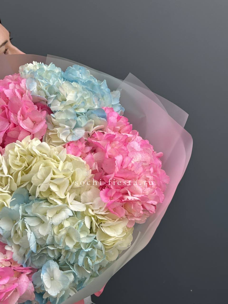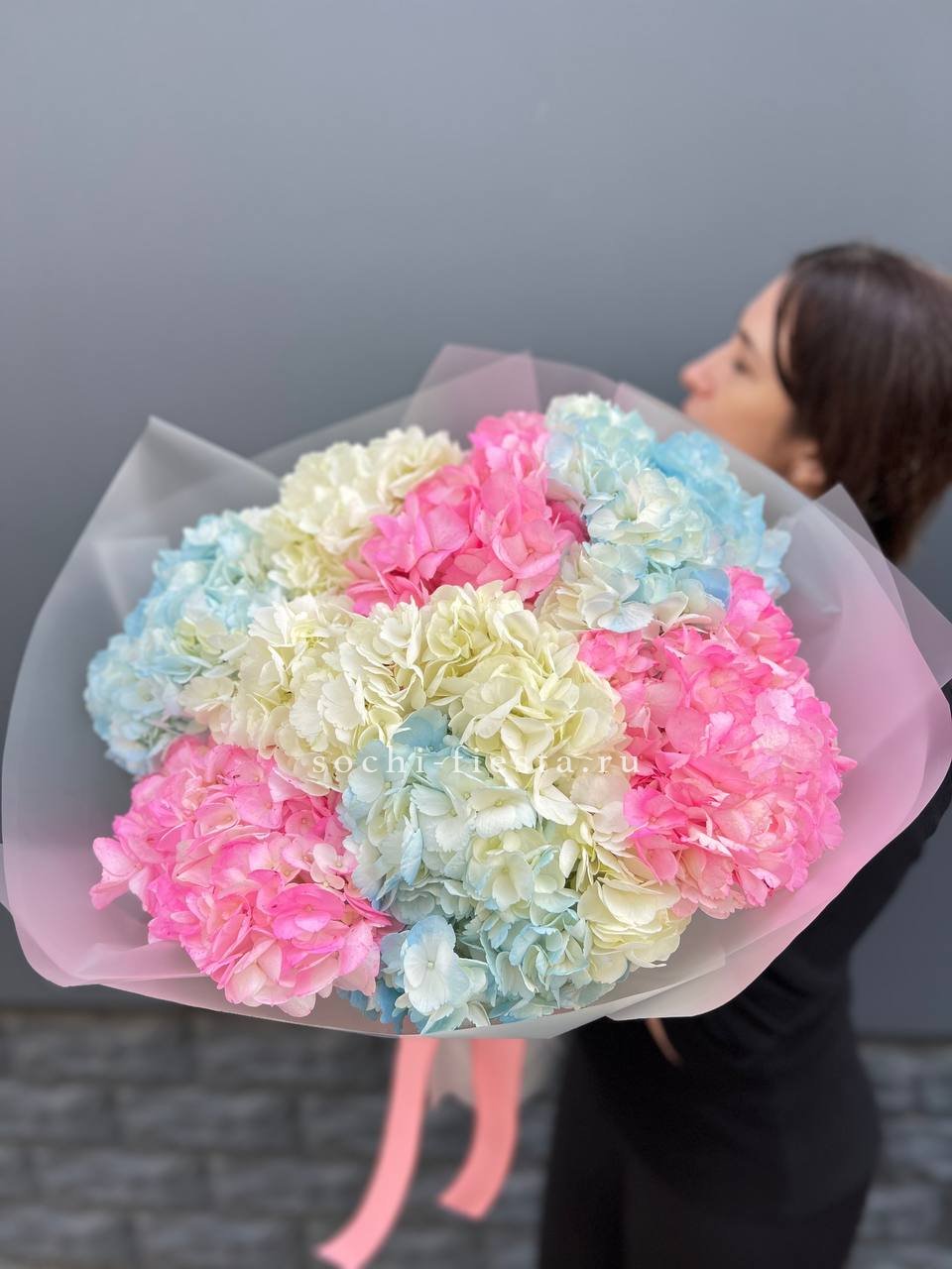 гортензия - 3 шт., лента, дизайнерская упаковка.