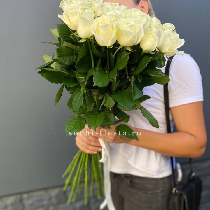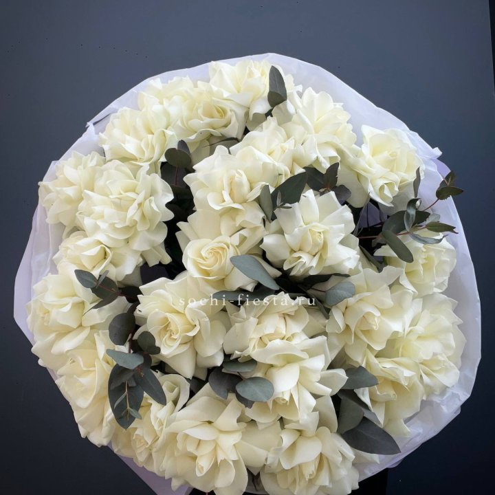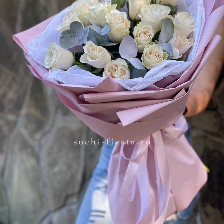 свадебный букет невесты из белых роз и зелени для торжества в региональном городе