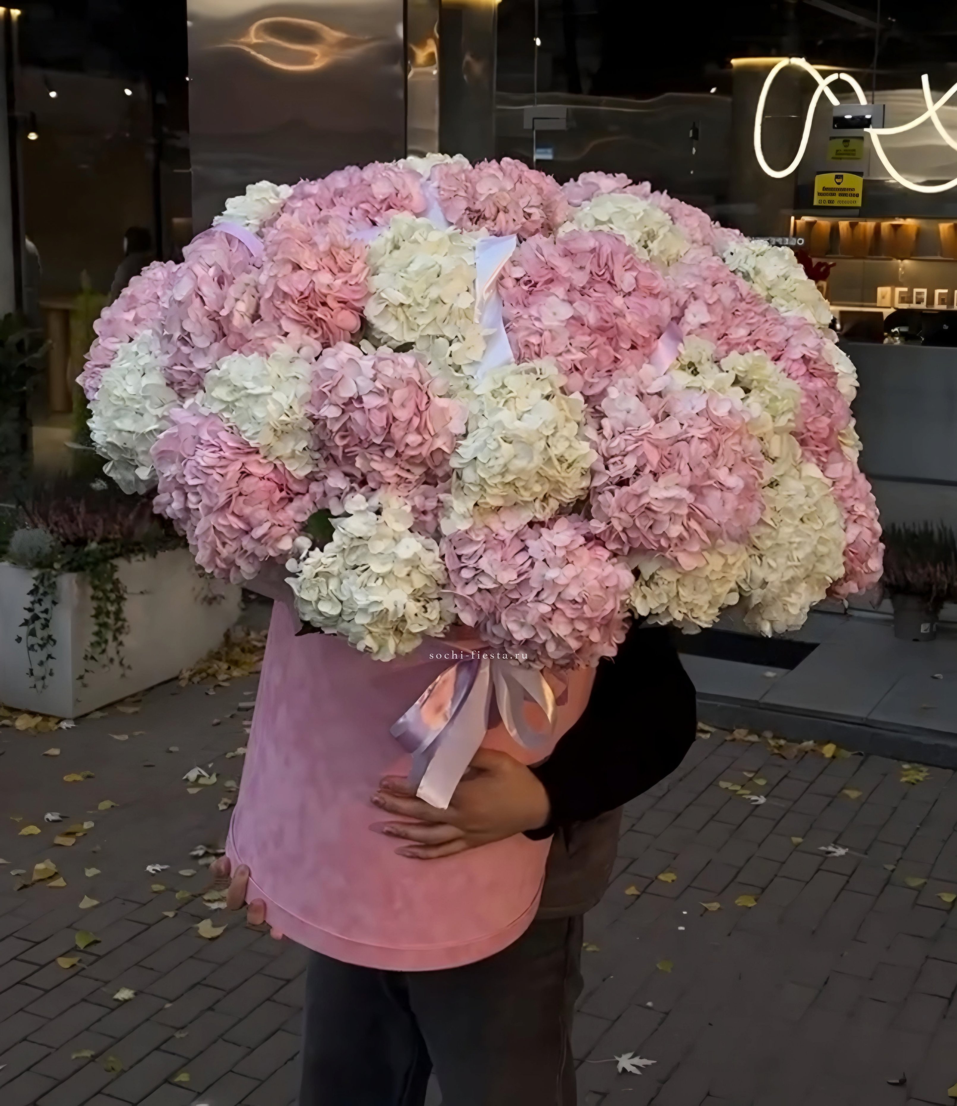 гортензия, лента, дизайнерская упаковка Цвет гортензии на выбор