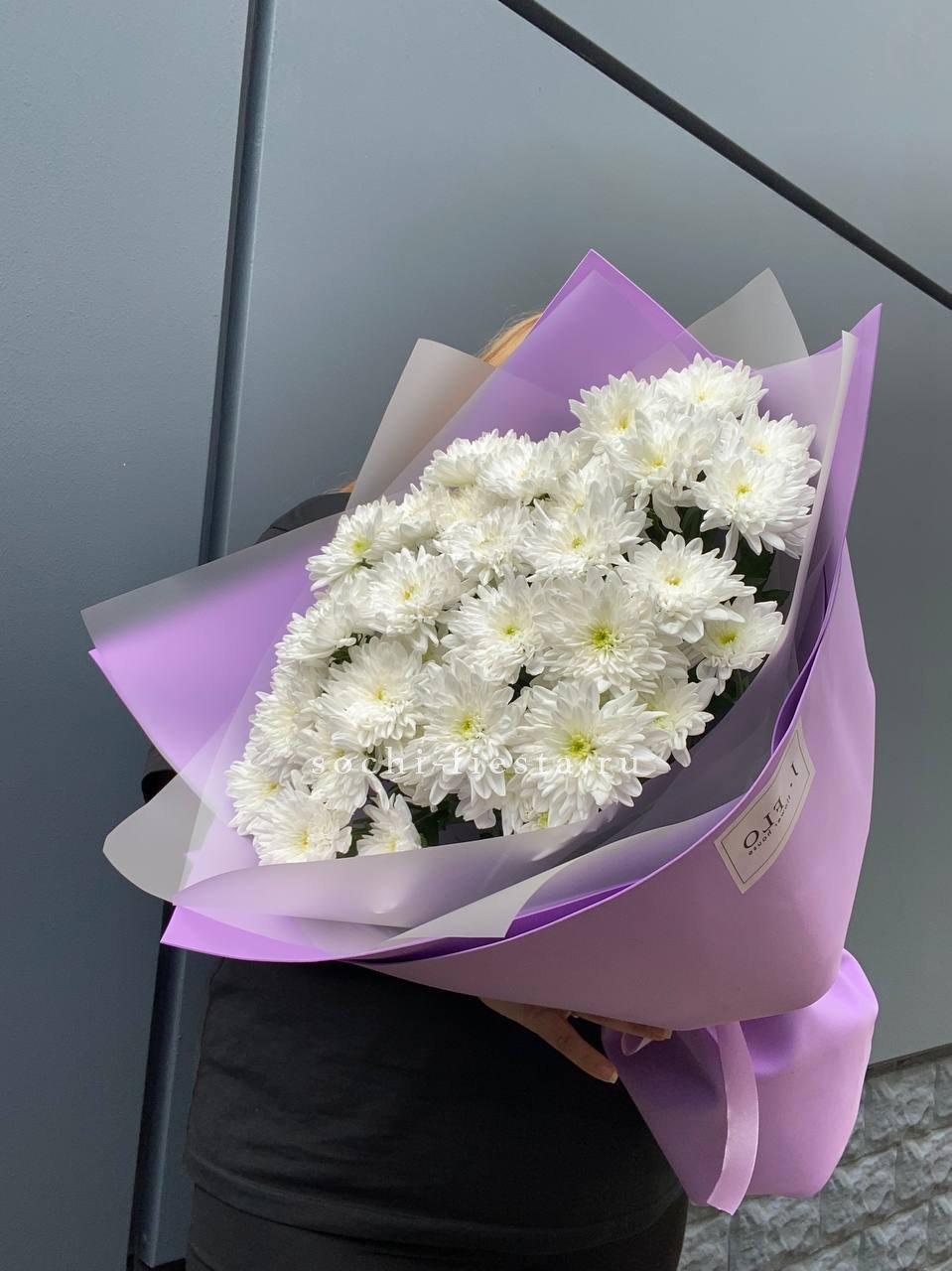 хризантема кустовая - 5 шт., лента, дизайнерская пленка.