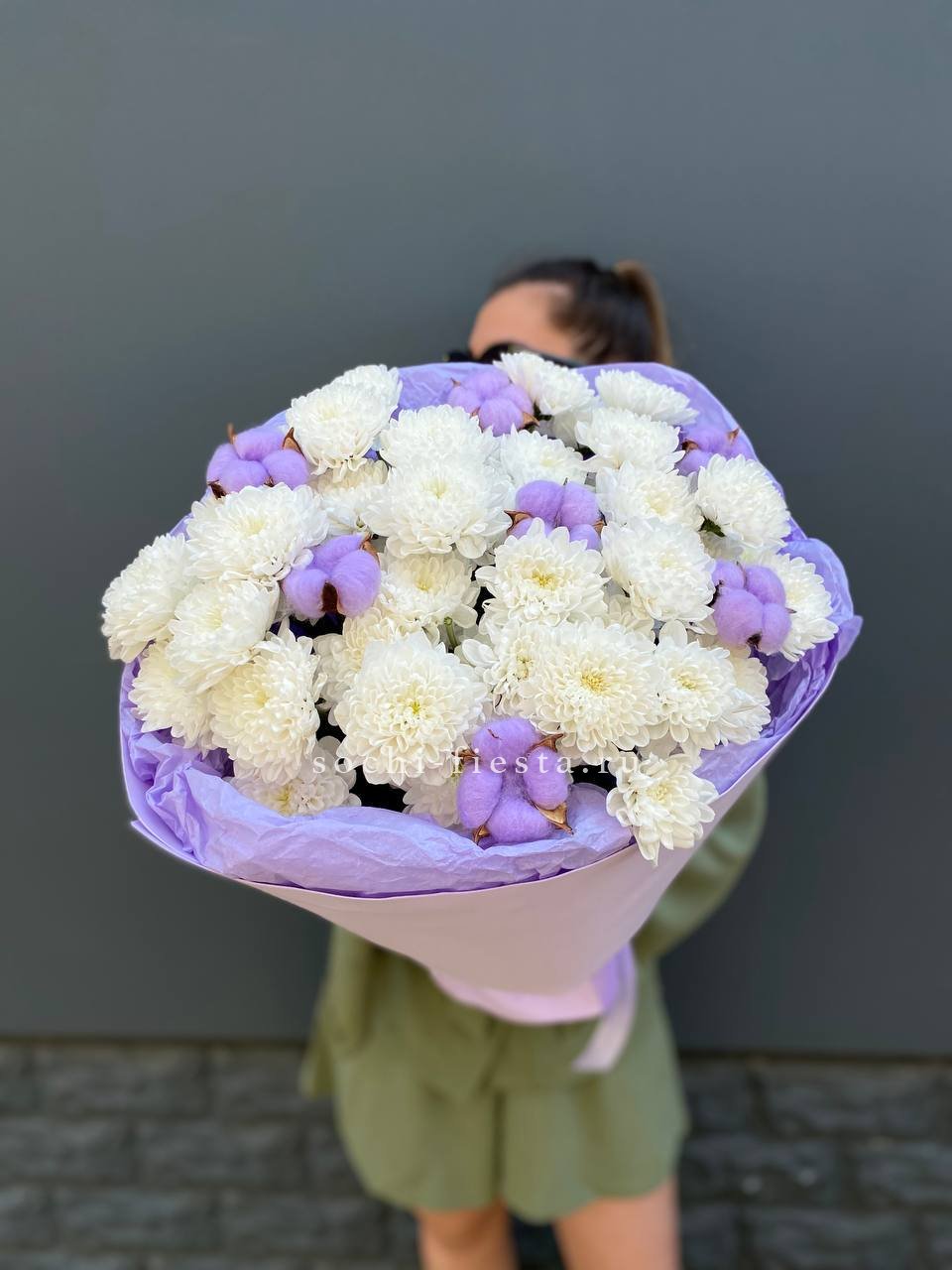 Для заказа товара " Букет хризантем и хлопка" с доставкой в Череповеце нажмите в корзину