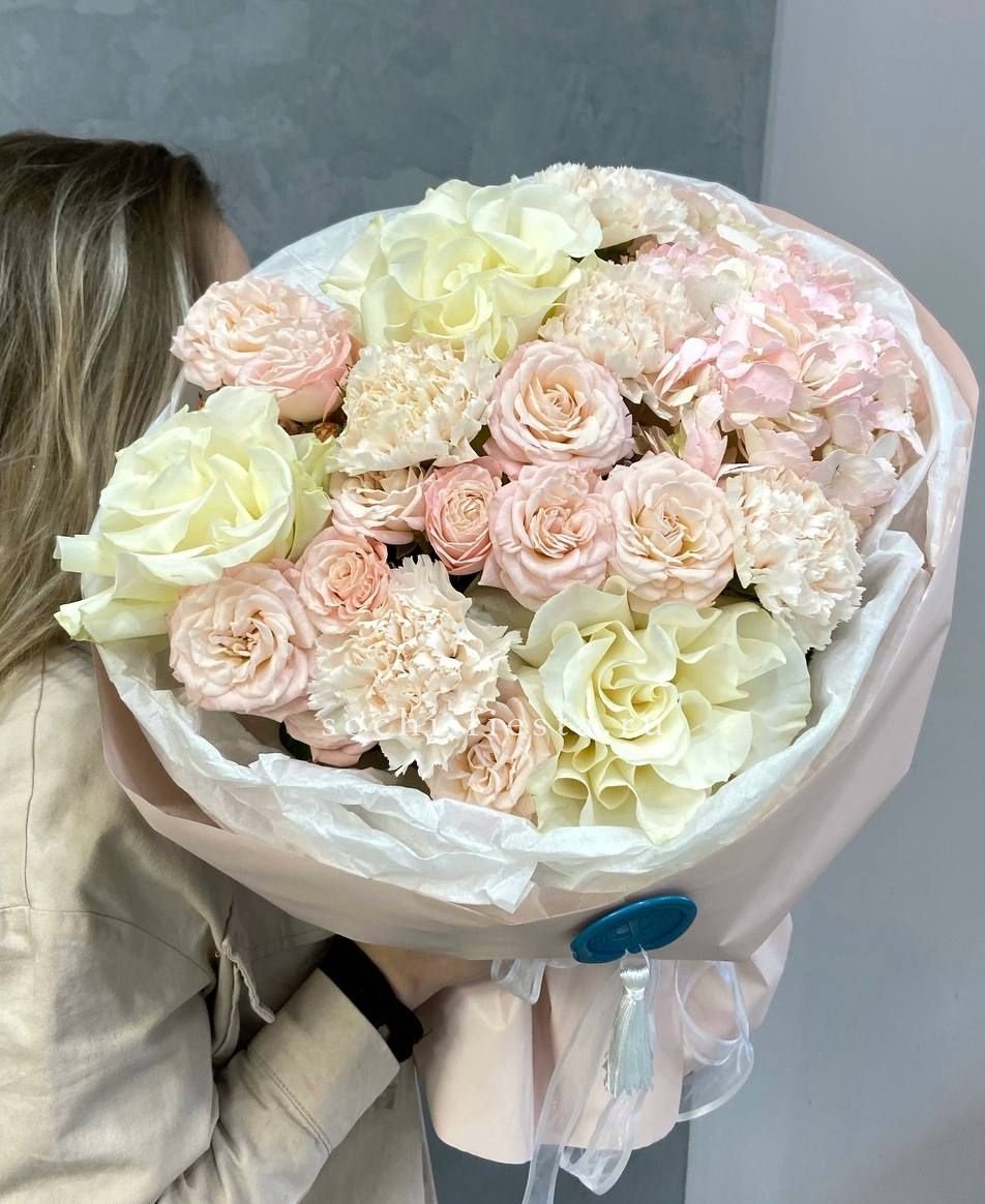 Букет в нежных светлых оттенках идеален для утонченных получательниц без повода, также для мамы и коллег!