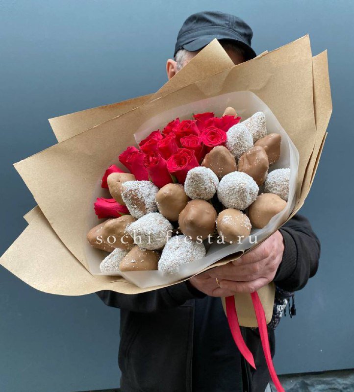 Розы и клубника в шоколаде Мерси