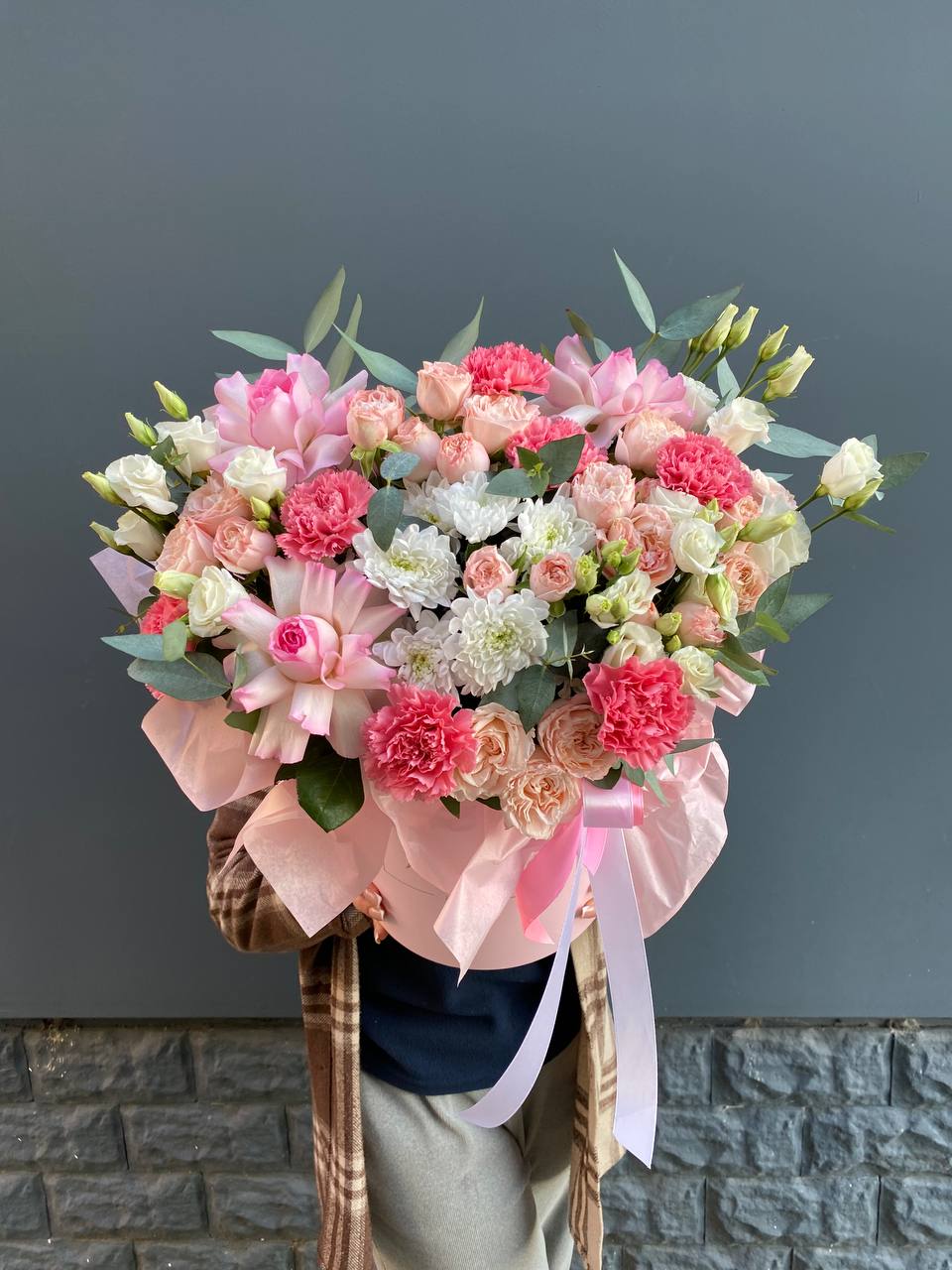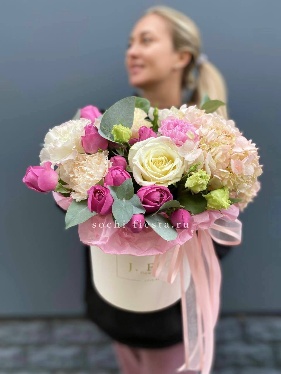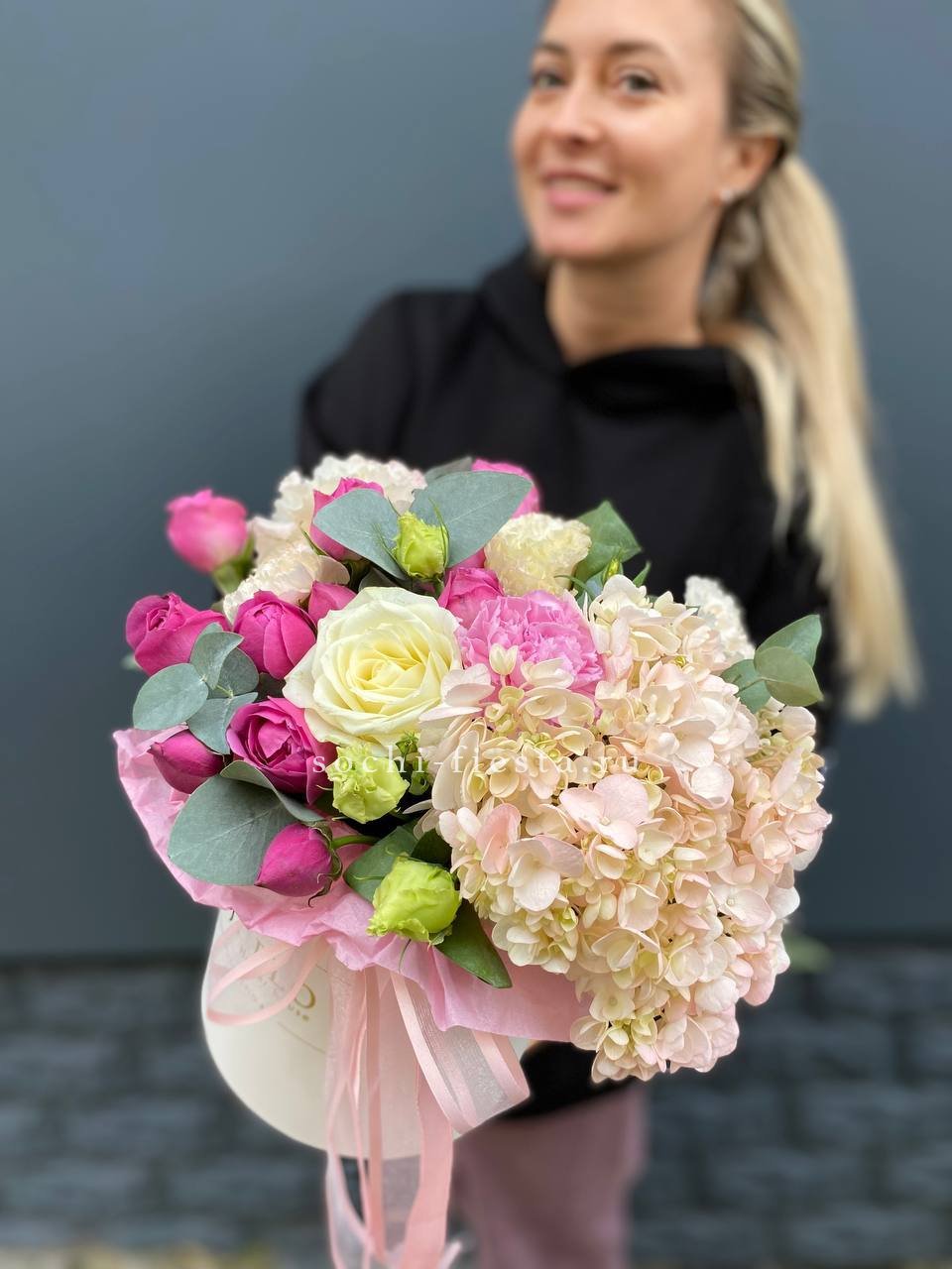 мисти баблс, гортензия, розовая роза, коробка размер 16D.