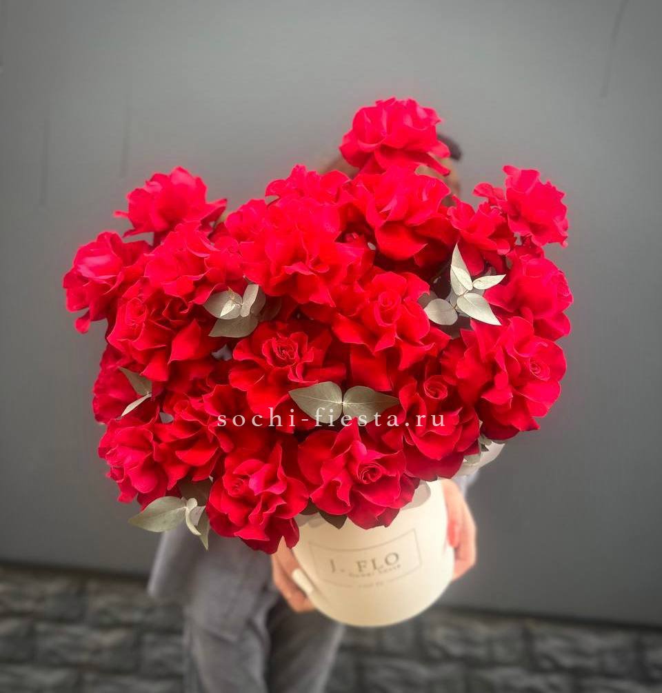 Настоящий взрыв цвета и позитива! Эта пышная и многосоставная композиция в стильной коробке притягивает взгляды богатством форм и оттенков — от нежно-розового до насыщенного белого. Это не просто цветы, а целая история о радости, празднике и восхищении. Подарок, который гарантированно произведет яркое впечатление и останется в памяти надолго.