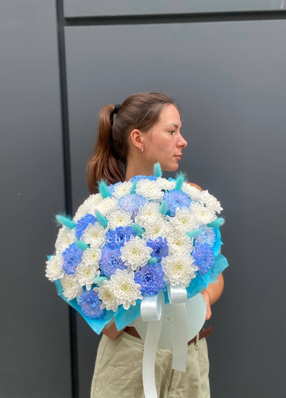 сборный нежный бокс из хризантемы, хлопка, герберы и эустомы.