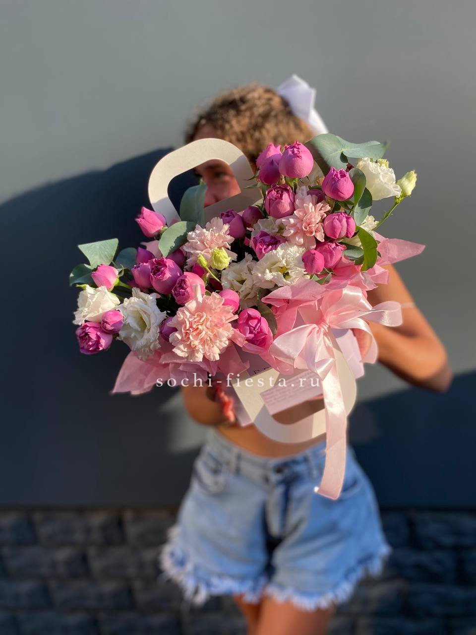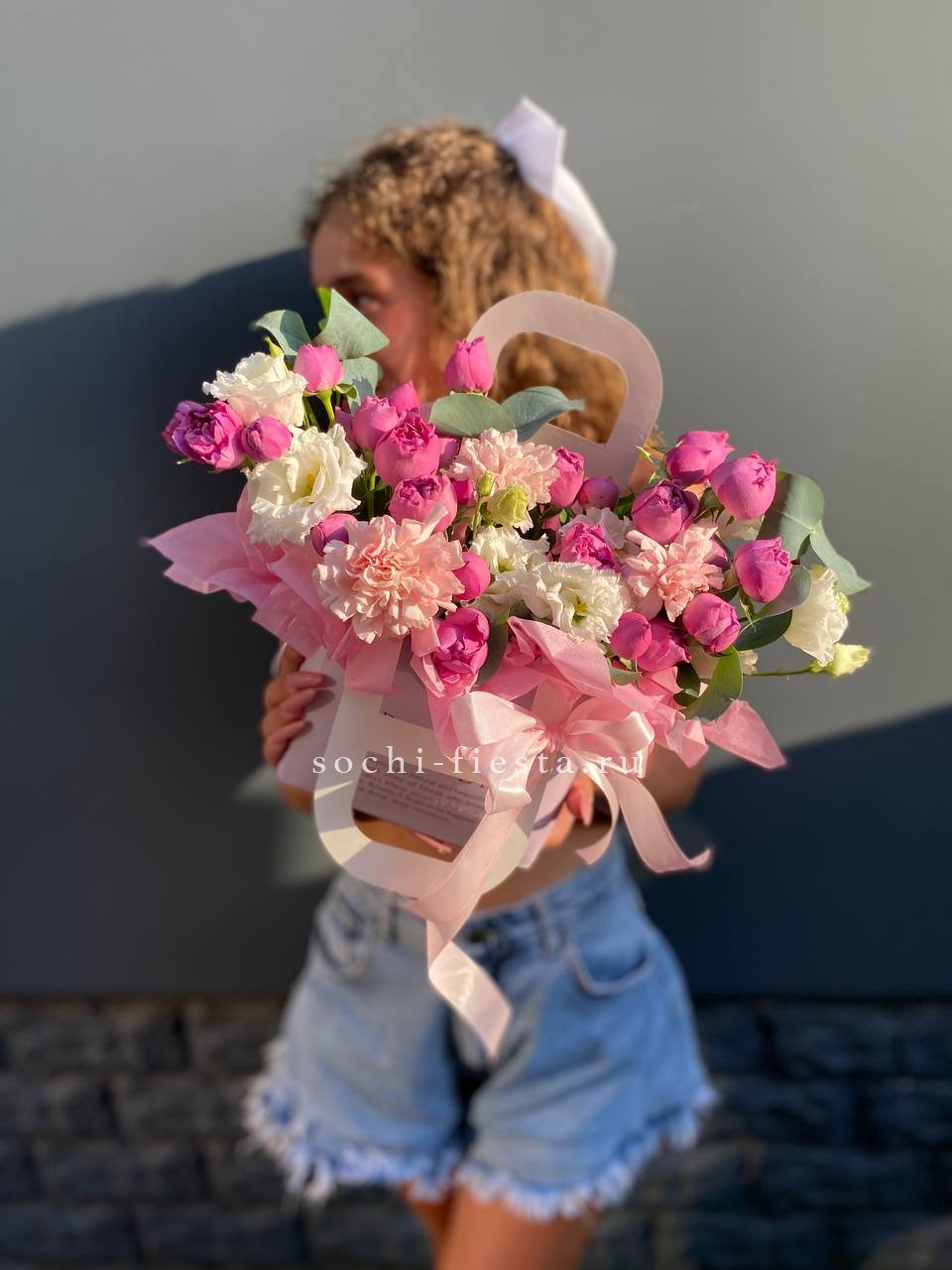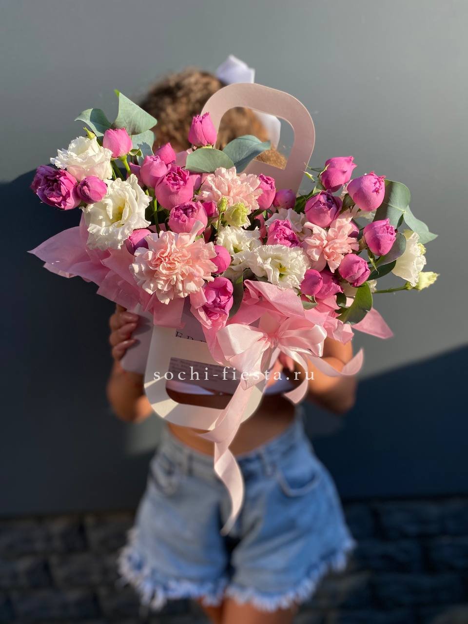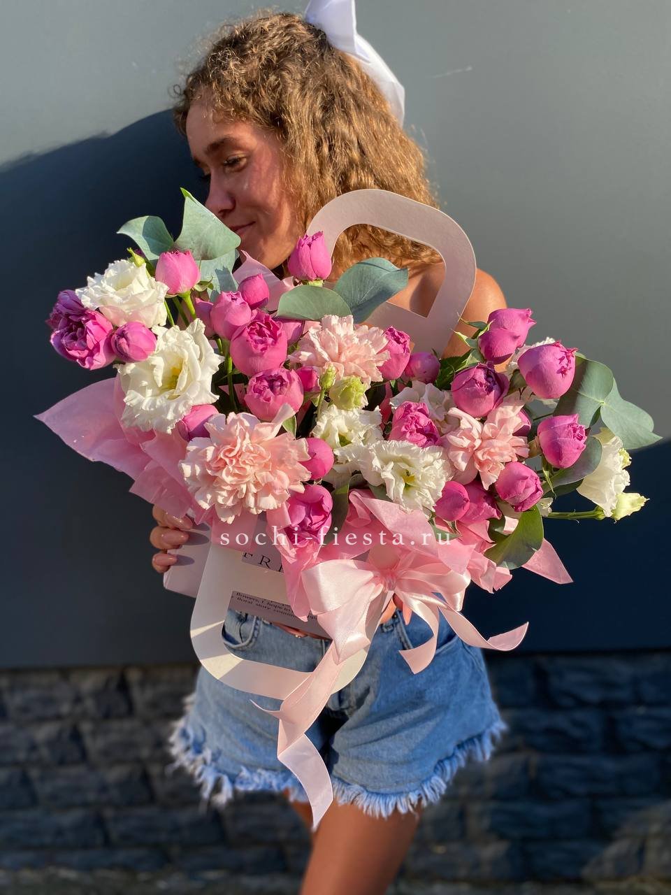Для заказа товара "Сумочка с кустовой розой и диантусами" с доставкой в Череповеце нажмите в корзину