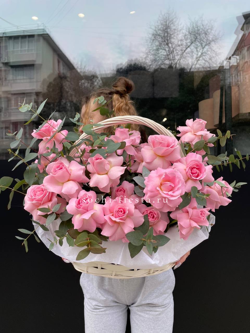 лилии, гортензия, антиринум, мисти баблс, розы, эустома, корзина гигант.