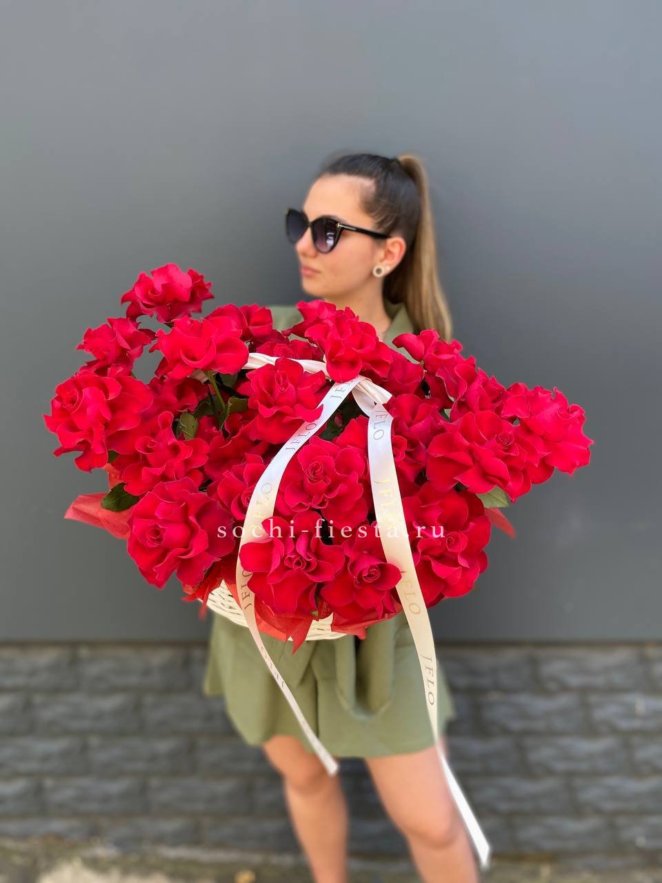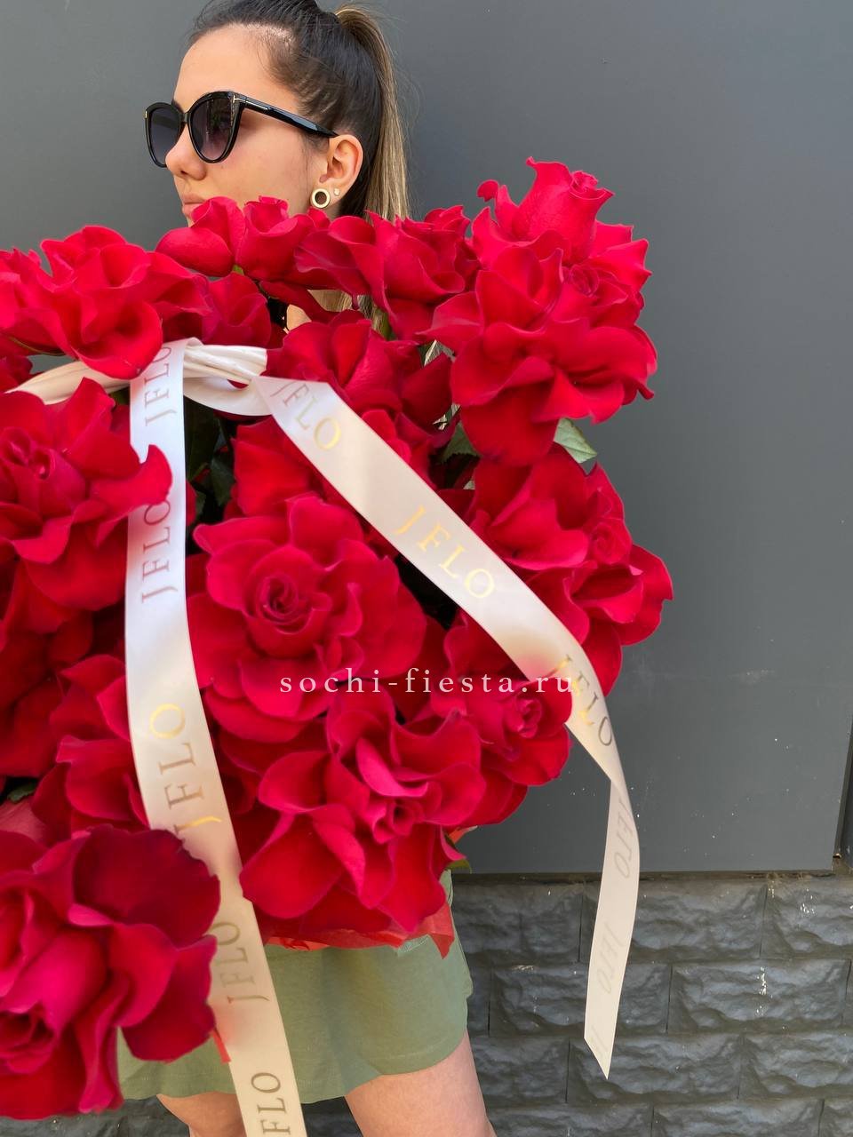 101 красная роза, лента.