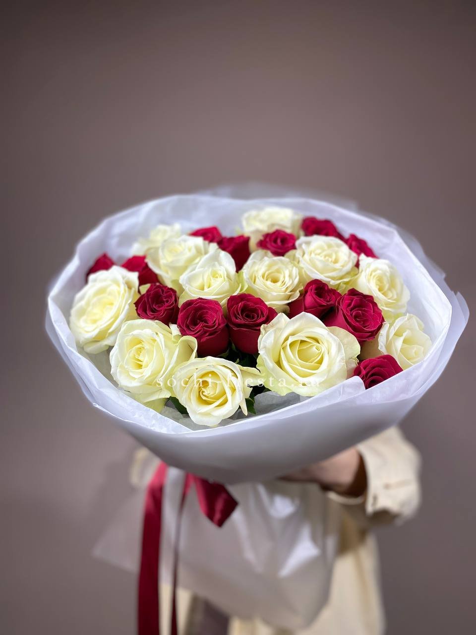 Для заказа товара "Букет их красных и белых 25 роз" с доставкой в Череповеце нажмите в корзину
