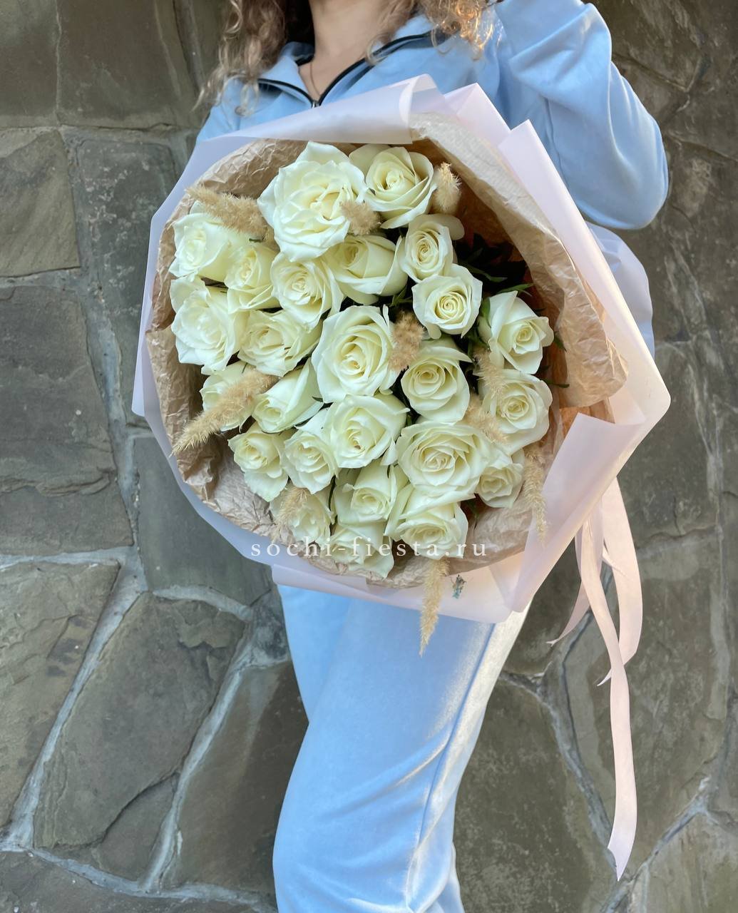 Для заказа товара "25 белых роз с сухоцветами" с доставкой в Череповеце нажмите в корзину