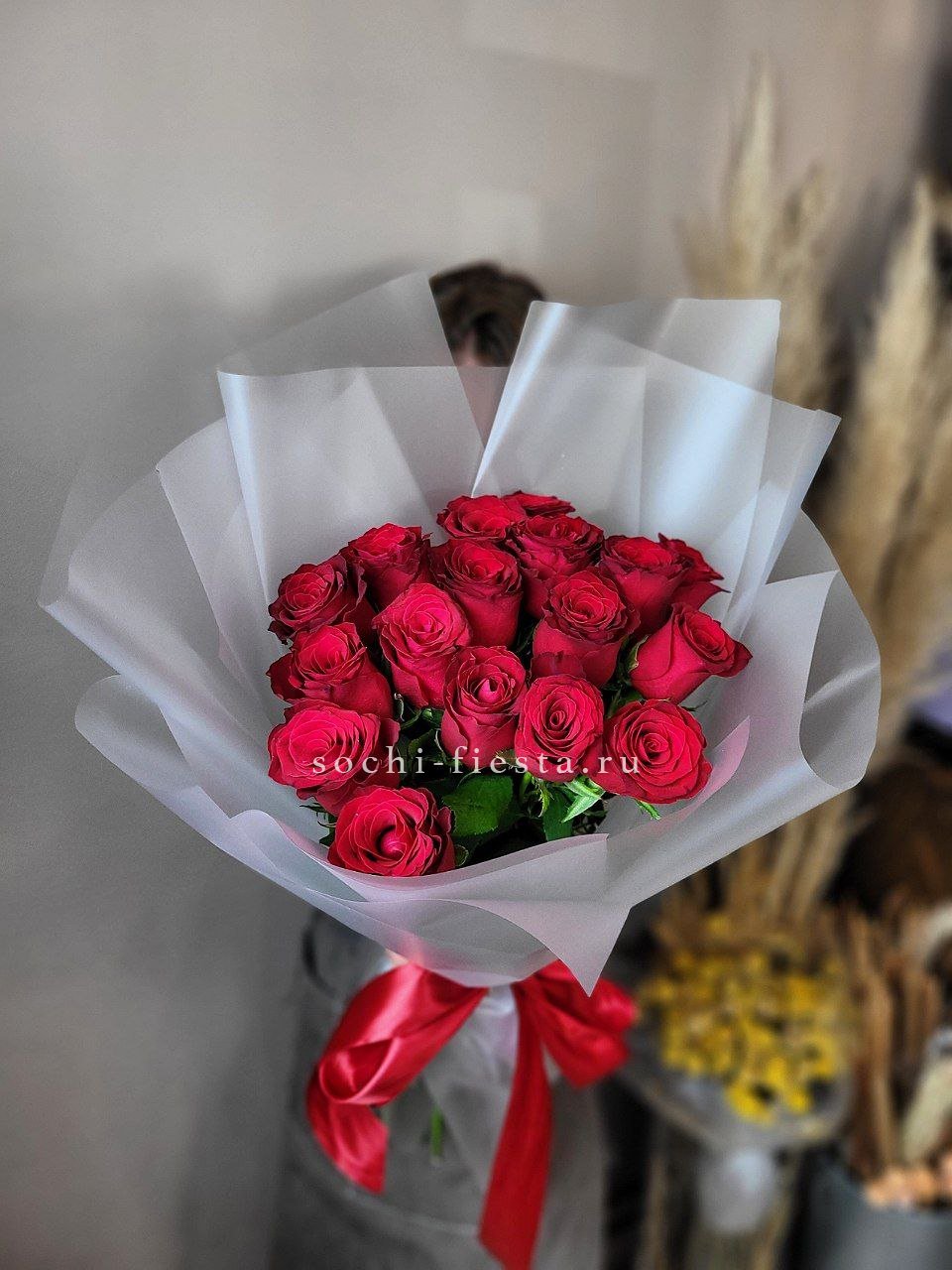 19 красных роз в крафте