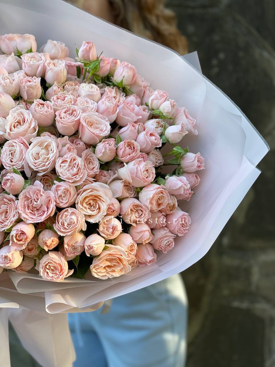 минимальный состав: кустовые розы 31шт., лента, упаковка на выбор.