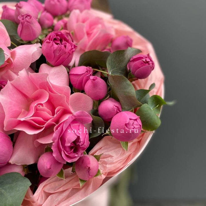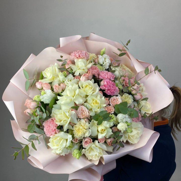 Зима и лето в Череповеце — розы и хризантемы как основа. Эти виды стабильны в поставках круглый год. Флорист дополняет их сезонными акцентами: хвойные ветви зимой, открытая эустома летом. Сборный букет в любое время года выглядит живым и актуальным.