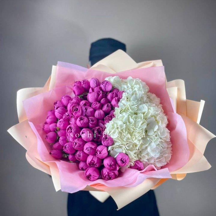 Главные летние хиты — гортензия, эустома, лаванда, ранункулюсы. Гортензия в белой, голубой и розовой палитре востребована на свадьбы и корпоративы. Эустома работает круглый год в смешанных композициях.